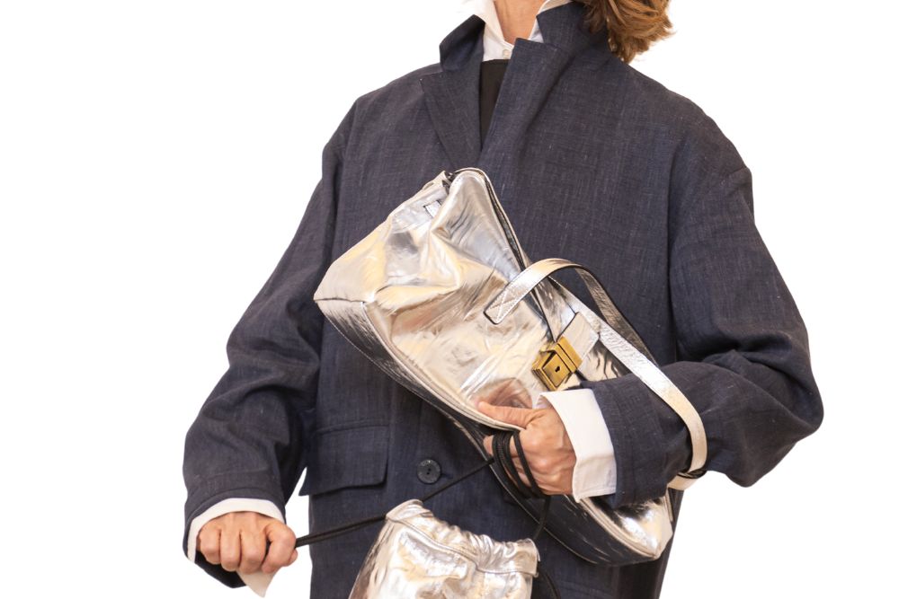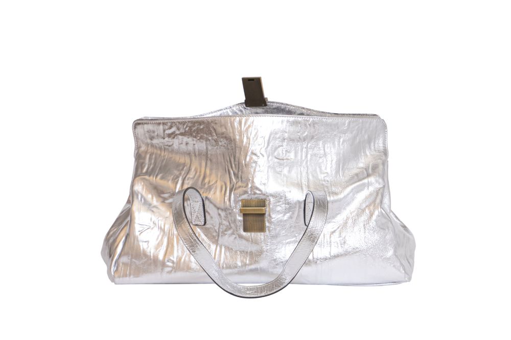 -maxi tasca in pelle con chiusura a zip posta sul retro della borsa