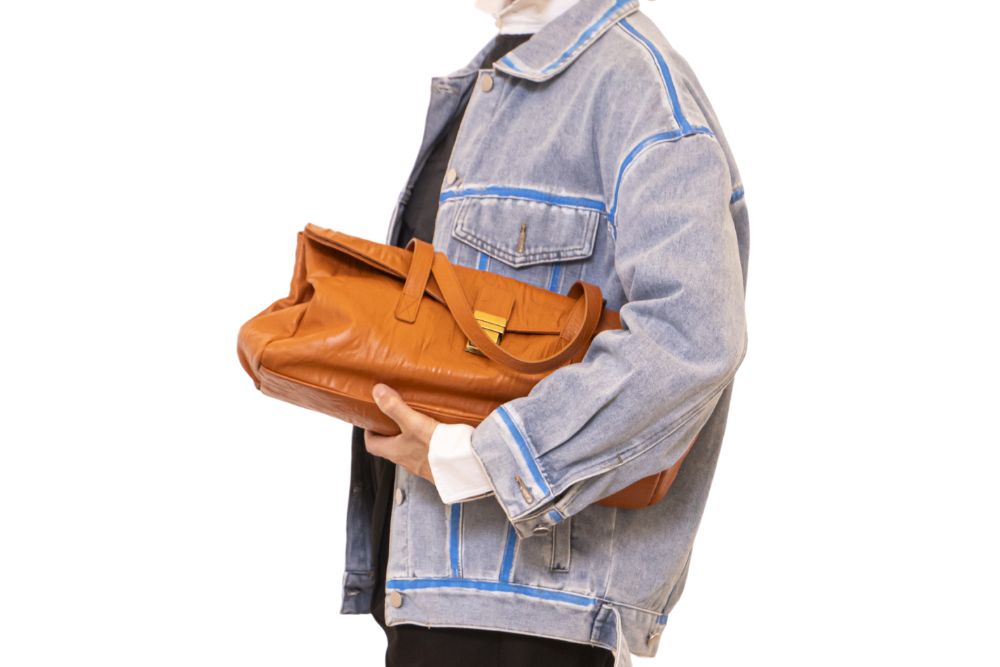 -tasca interna con chiusura a zip e mascherina in pelle