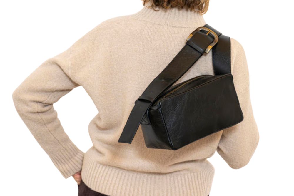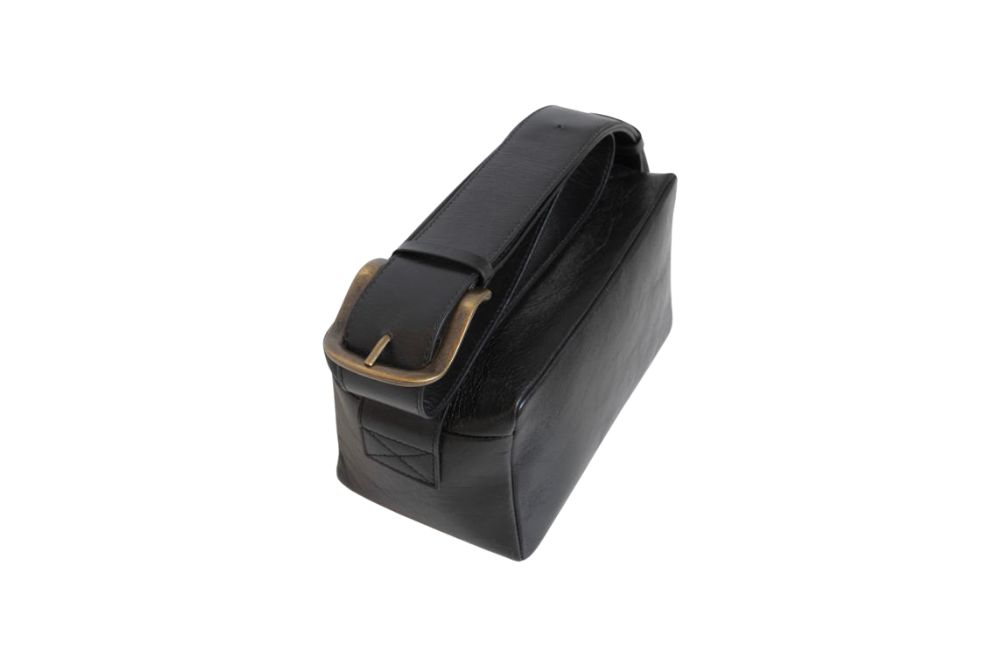 Borsa mini box in pelle effetto vintage con tracolla larga 5 cm. La grande fibbia in metallo permette di regolare la tracolla accorciandola o allungandola per poter indossare la borsa a spalla o a tracolla traversa.