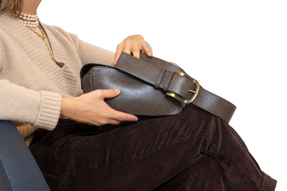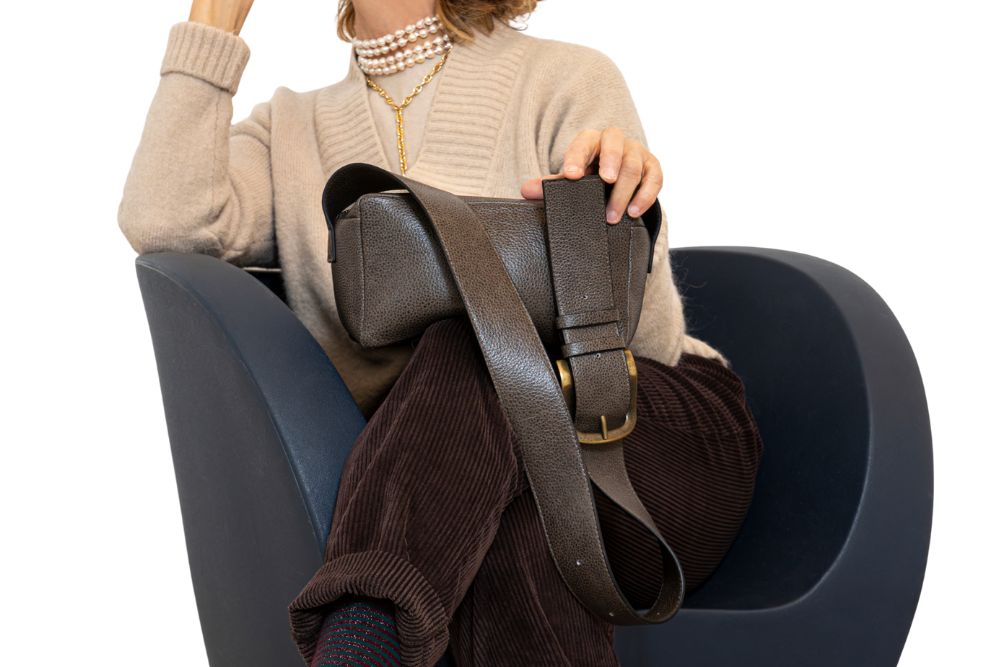 -tracolla larga in pelle con fibbia in colore ottone