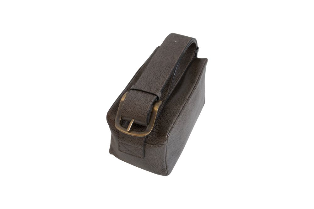 Borsa mini box in pelle con tracolla larga 5 cm. La grande fibbia in metallo permette di regolare la tracolla accorciandola o allungandola per poter indossare la borsa a spalla o lunga a tracolla traversa.