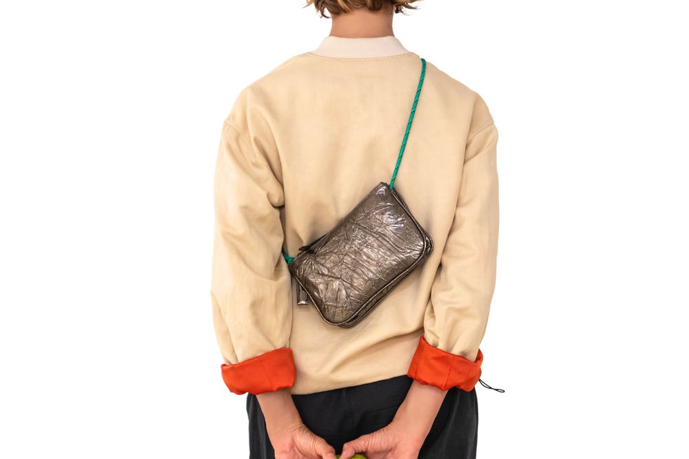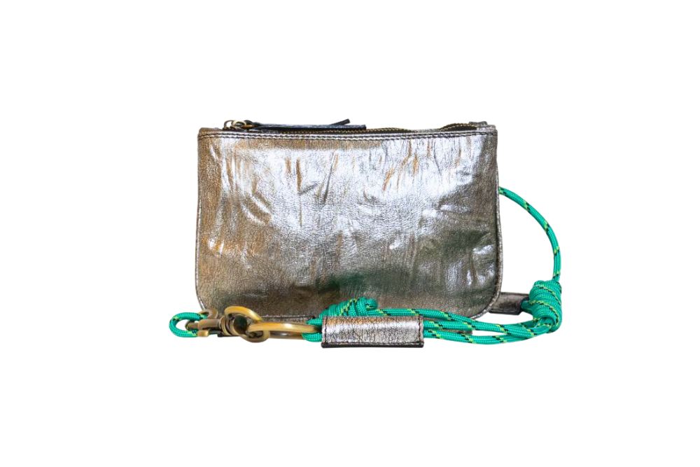NEW item - Borsa a doppio scomparto in pelle effetto increspato con tracolla regolabile in corda nautica.
