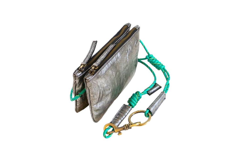 DOPPIA TASCA – borsina doppia in pelle increspata colore canna fucile