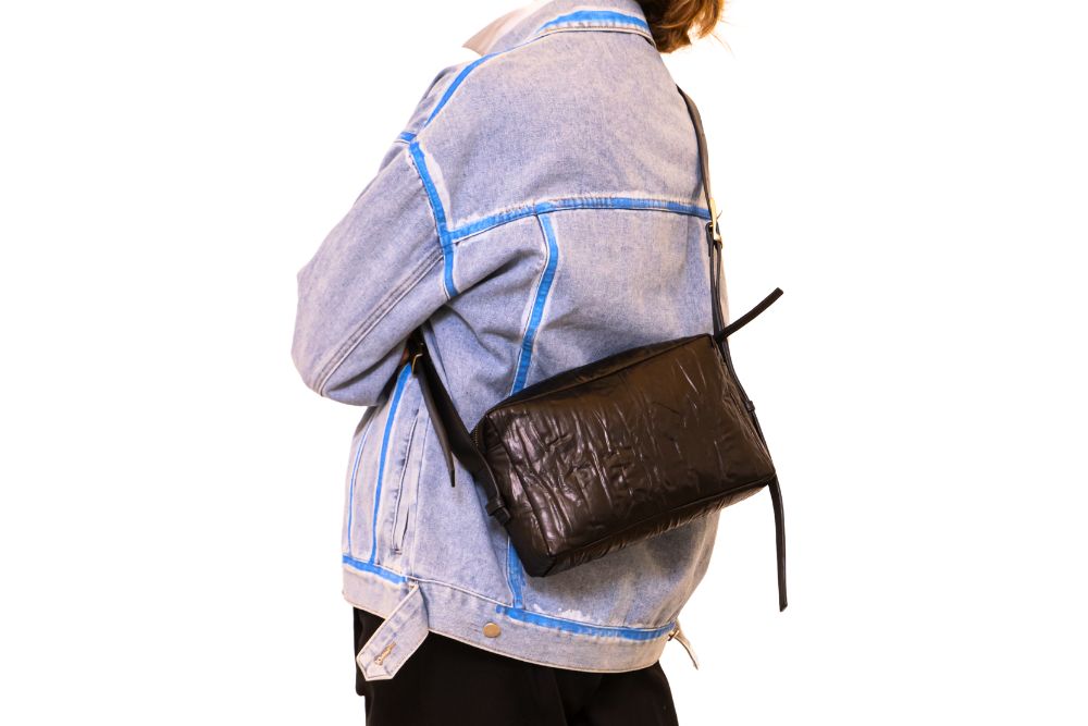 Home/Borse/TASCAPANE – borsa in pelle increspata colore nero